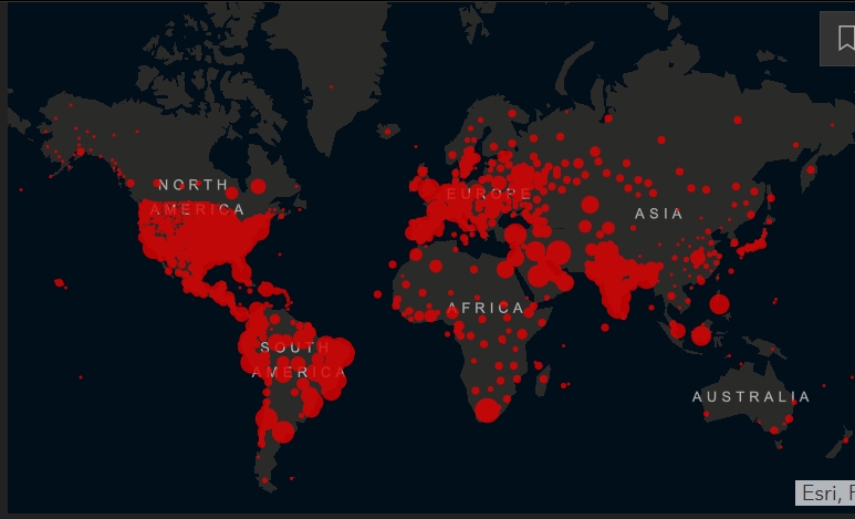 Universidade americana Johns Hopkins mostram que 19.696.961 pessoas foram contaminadas por